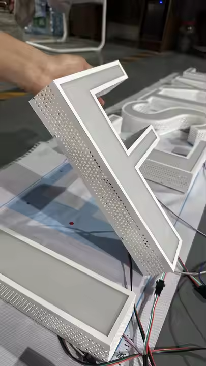 Business logo Sign Outdoor Advertising Illuminated Steel Led Channel Letter Sign 3d Led Perforated Front-lit Letter Sign
