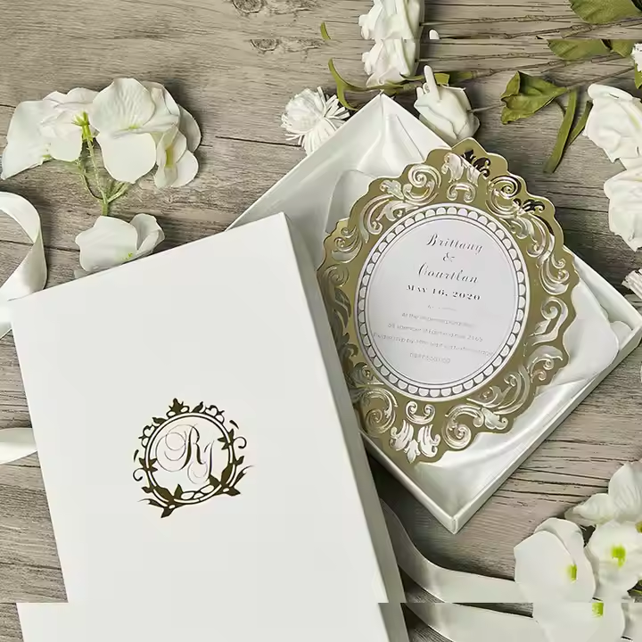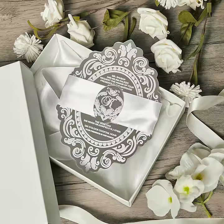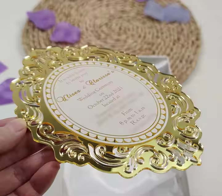 "Tired of paper invitations that end up in the trash?Ourmuseum-grade acrylic invitesbecome cherished heirlooms:✅ No cheap plastic warping (heat-resistant up to 200°F)✅ No fading – 24k gold mirror coating by German craftsmen✅ No generic designs – 200+ laser patterns from Art No